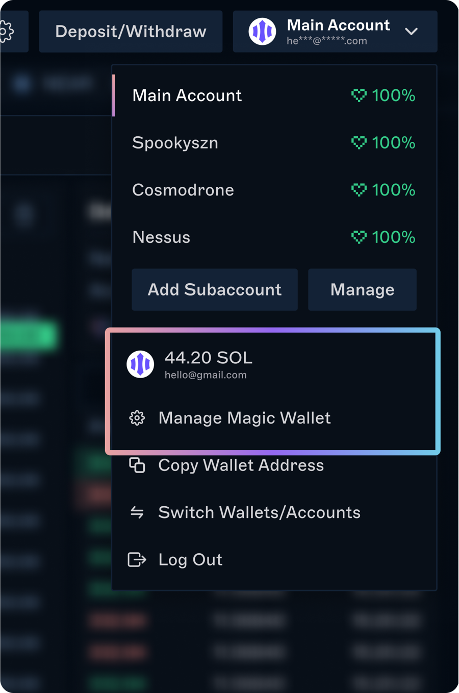 When you sign up for Leopard with your email, a Magic Wallet(opens in a new tab) is automatically created for you. This is a non-custodial crypto wallet associated with your Leopard account that you have sole control over.
