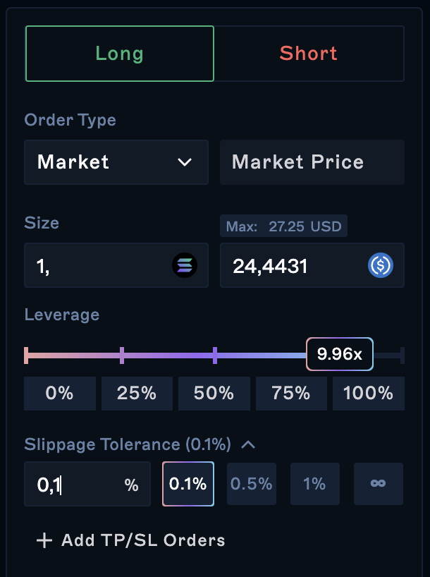 You can also set your maximum allowed slippage for your position.