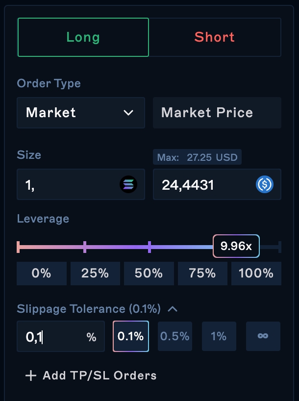 Leopard offers Market and Limit Orders that you can use to manage risk. If you are a beginner and just want to buy the perpetual contract at its current price then go with a Market Order. To read more on Market Orders, you can read about it on Order Types.