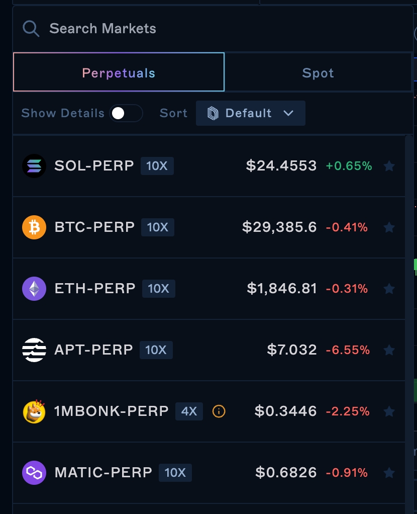 Select the market you would like to trade by clicking Trade followed by Perpetuals and choose your desired market.