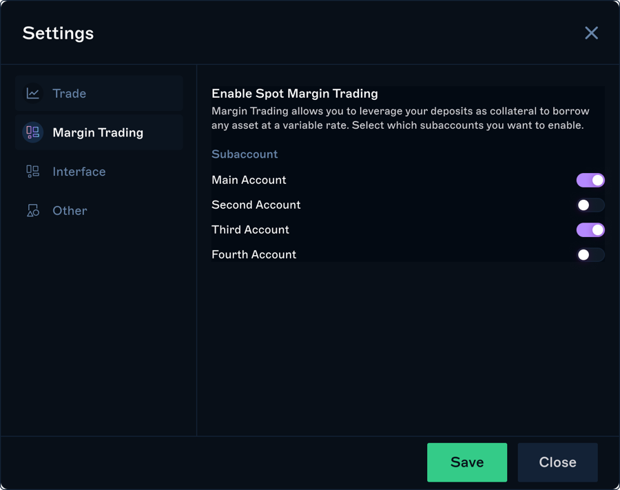 Margin needs to be enabled per subaccount. Here's how you can enable margin: